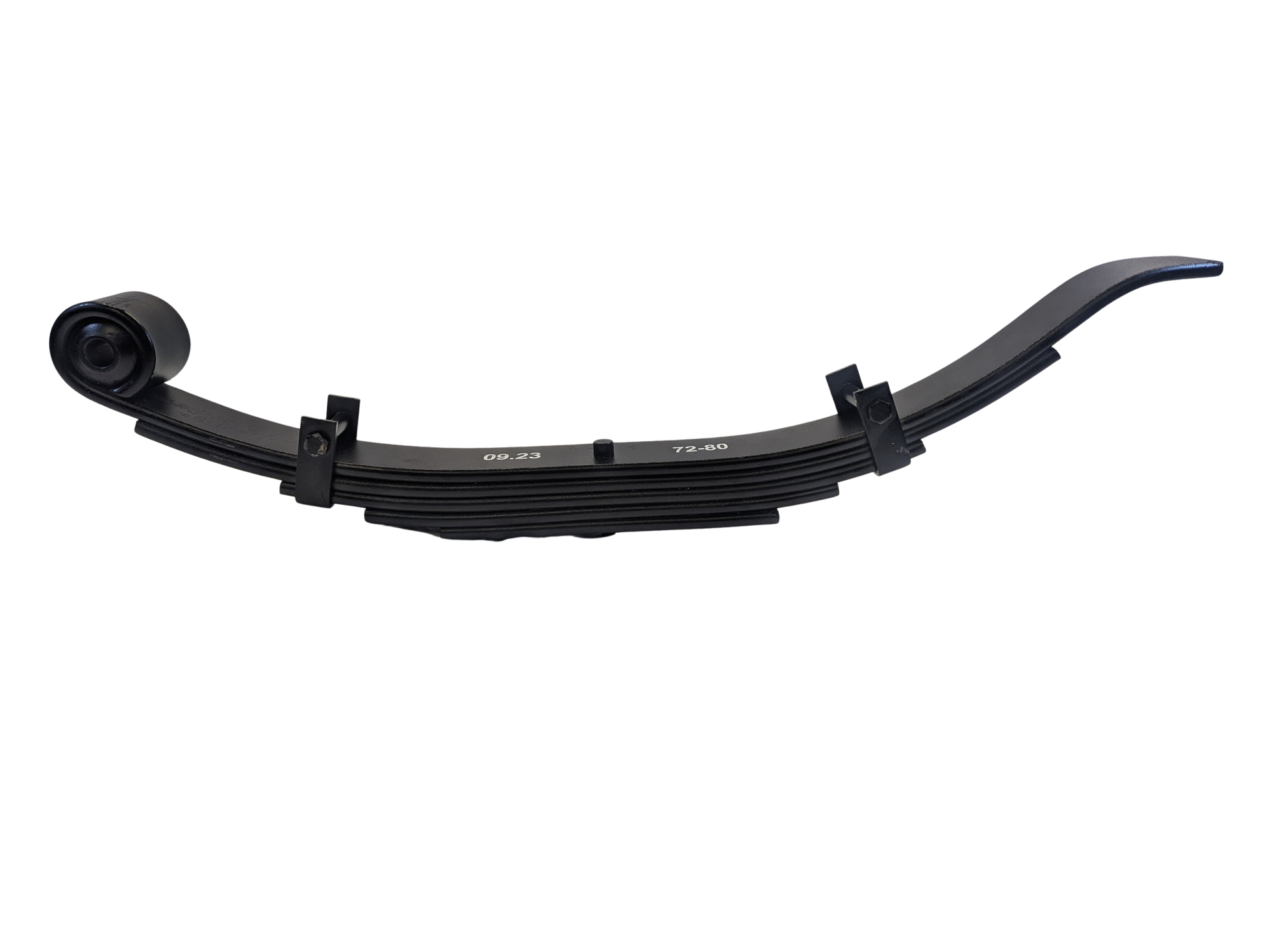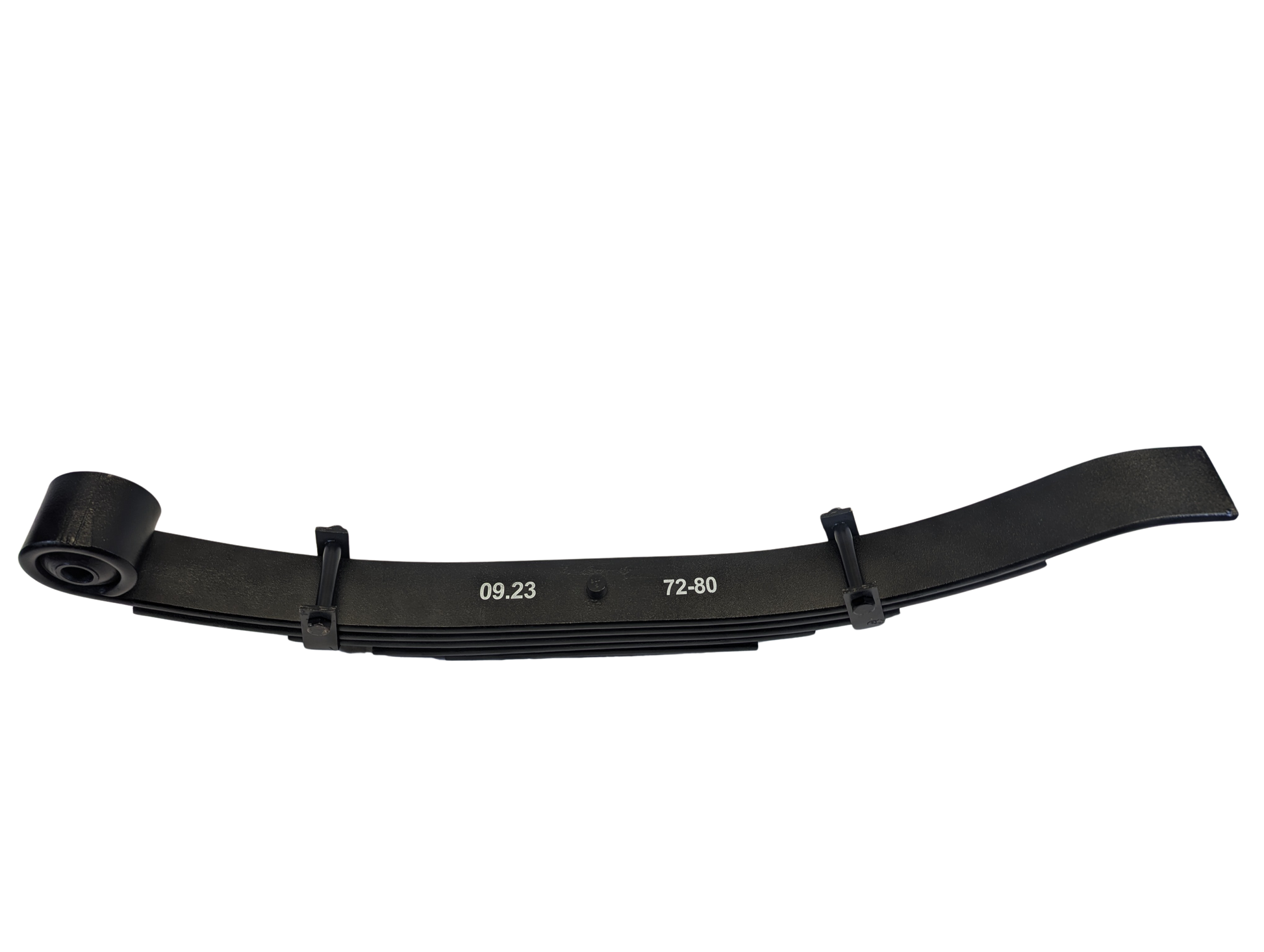 Heavy-duty 5-leaf slipper spring engineered for 10,000 lb trailer axles. It provides exceptional shock absorption and durability, ensuring a level and smooth ride even under demanding conditions. Lightweight yet robust, it mounts easily with hangers (sold separately) and significantly extends trailer lifecycle with reduced wear and tear. Is cross compatible with Lippert Leaf Spring part # 2022299946