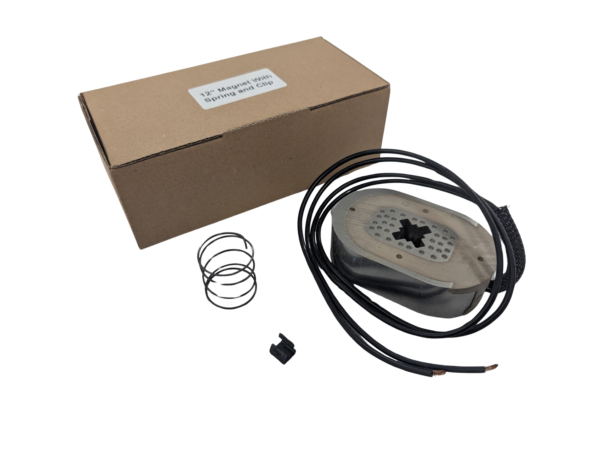 Trailer brake magnet kit for 12" x 2" brakes. Kit includes Magnet, spring, and clip. Used on most 5.2K, 6K, 7K, and 8K (Lippert hybrid) axles.