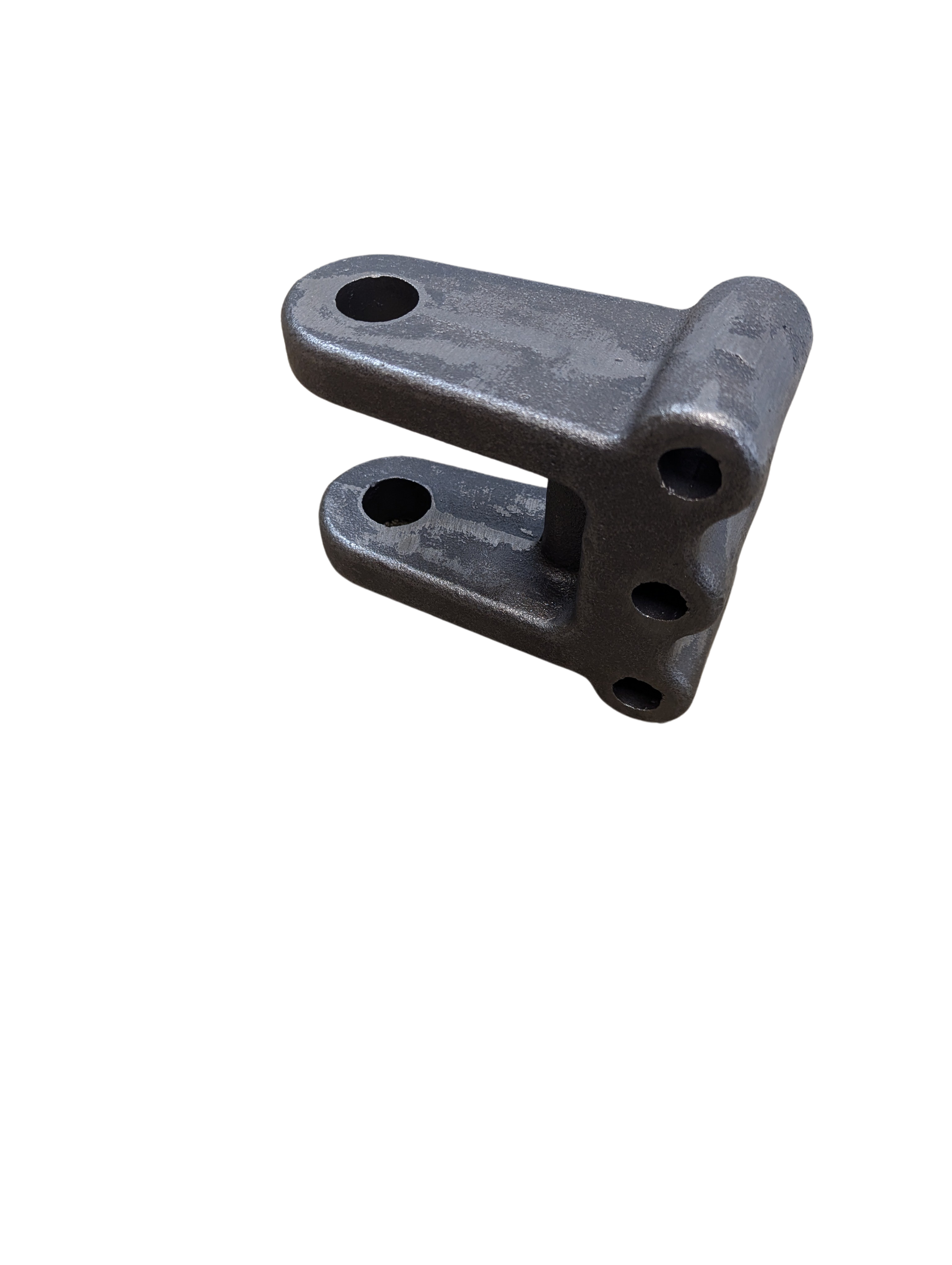 Heavy Duty 2-Tang Clevis Attachment. For use with 1" pin and a 2-1/2" opening, this allows a connection to a Lunette Ring or a farm-style drawbar. Sturdy steel has a raw finish. Adjustable channel bracket, hardware, and clevis pin sold separately. Requires 3 bolts to mount.